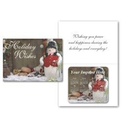 - Looking for a unique holiday card? This greeting card includes a magnetic year-long calendar. Send your season’s greetings with an added gift inside! Our bi-fold greeting card comes in several holiday-themed designs and features a beautiful magnetic one-year calendar that you can imprint with your company name or logo.
